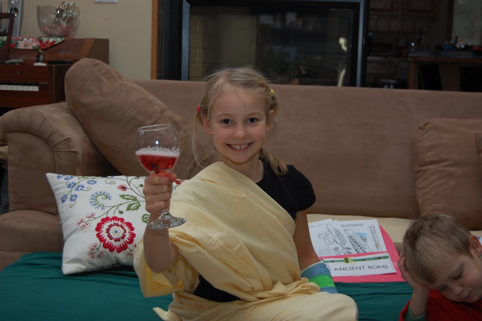 We held our Roman Feast tonight and had a very fun time. Technically, it was supposed to be at the end of last week, but it worked out just fine fitting it in today. It was great to show daddy all that we have been learning about Rome, the Romans verses we memorized, piano songs the kids have been practicing